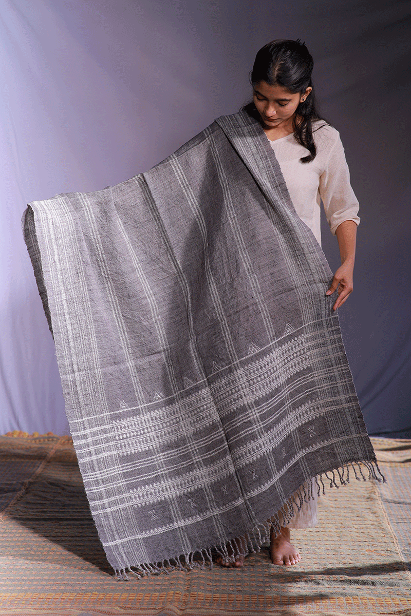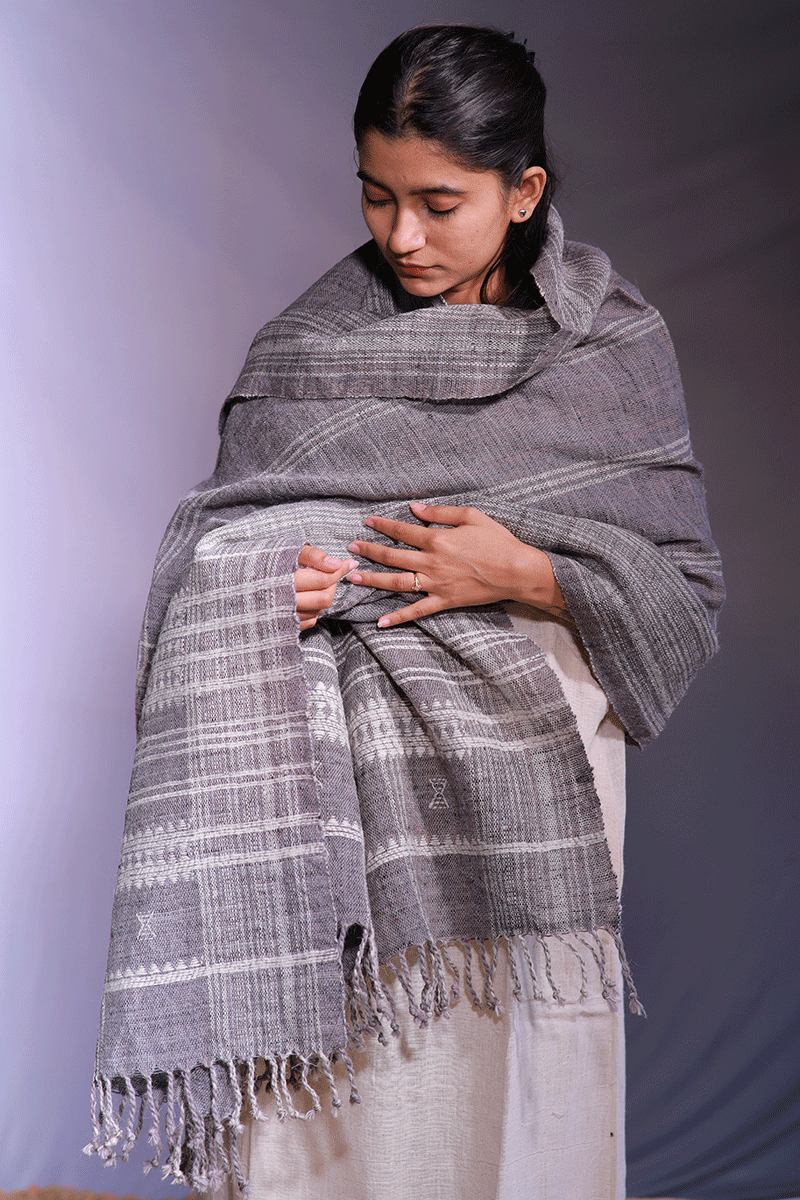 Handwoven Desi Wool Grey Shawl from Kutch | Local Sheep Wool