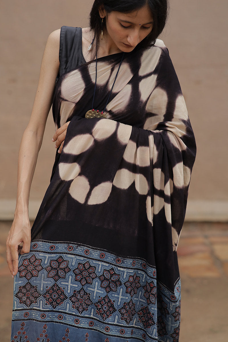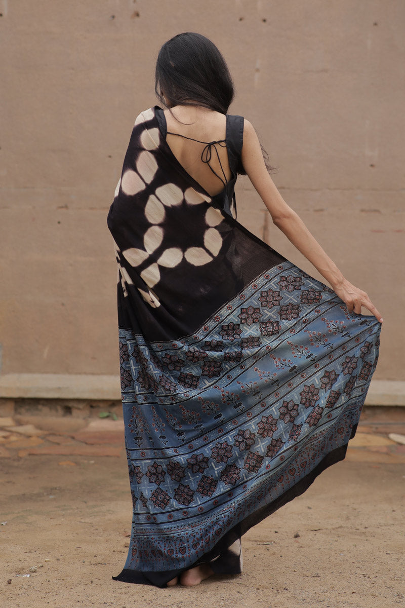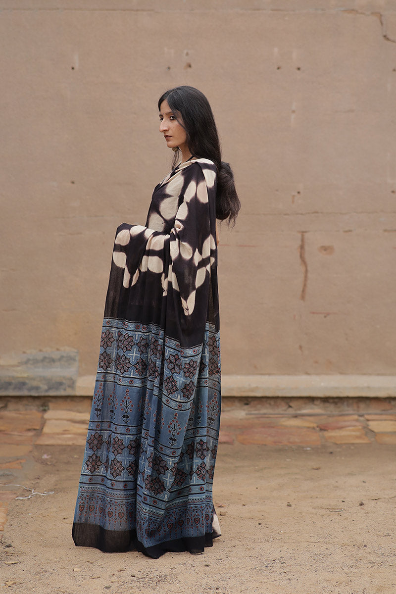 Step into timeless elegance with this beautifully handcrafted red and black Ajrakh block print cotton saree, a tribute to centuries-old artisan traditions of Kutch. Made using natural dyes and traditional hand-block printing techniques, this saree reflects the charm of slow, sustainable fashion.