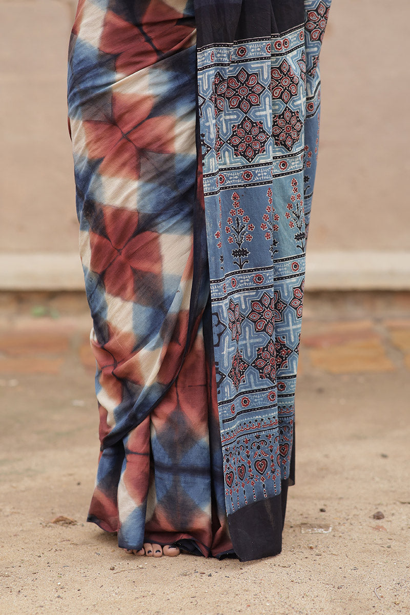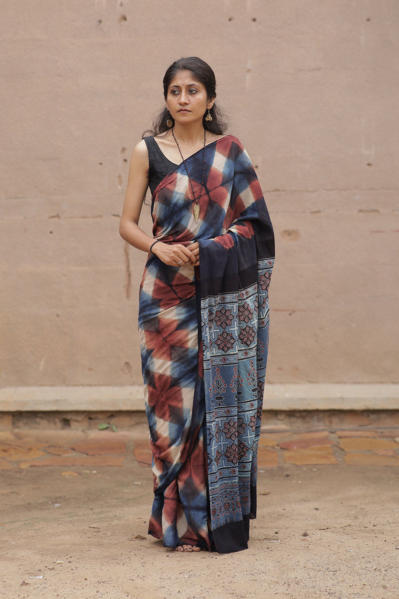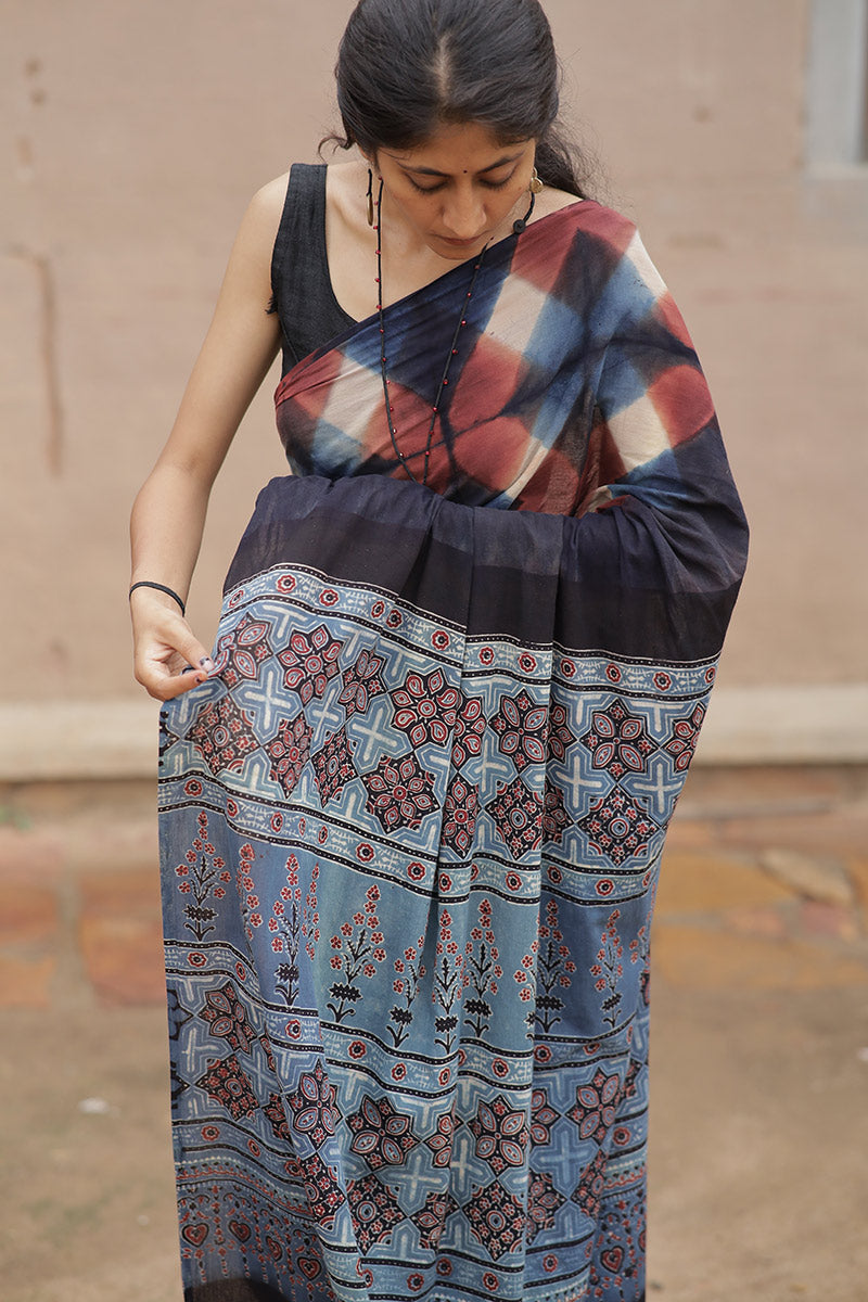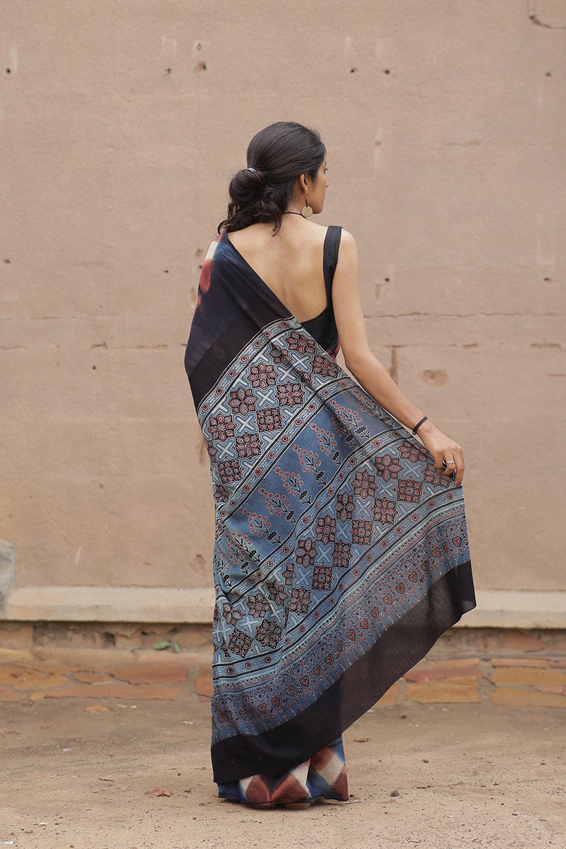 Step into timeless elegance with this beautifully handcrafted red and black Ajrakh block print cotton saree, a tribute to centuries-old artisan traditions of Kutch. Made using natural dyes and traditional hand-block printing techniques, this saree reflects the charm of slow, sustainable fashion.