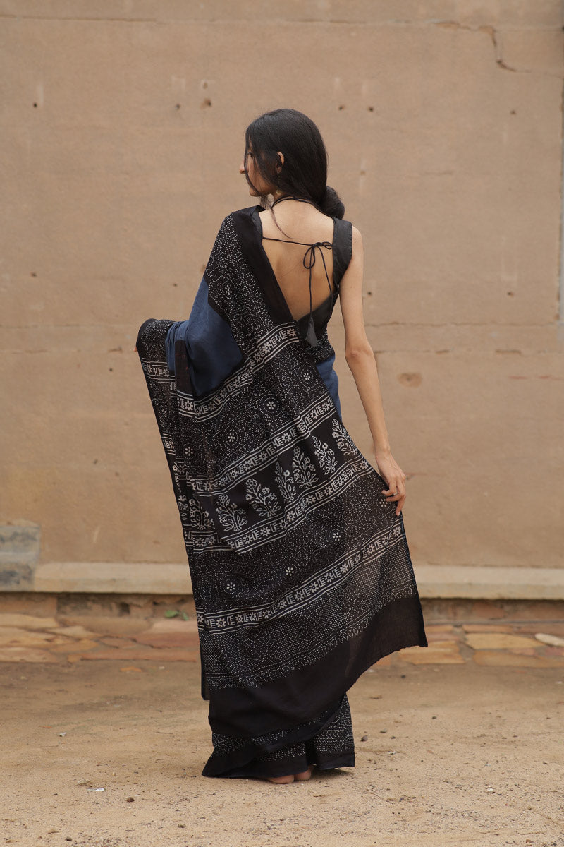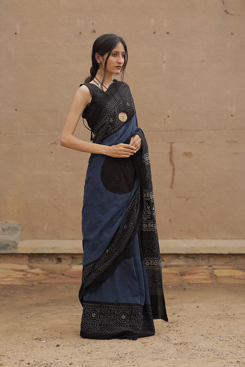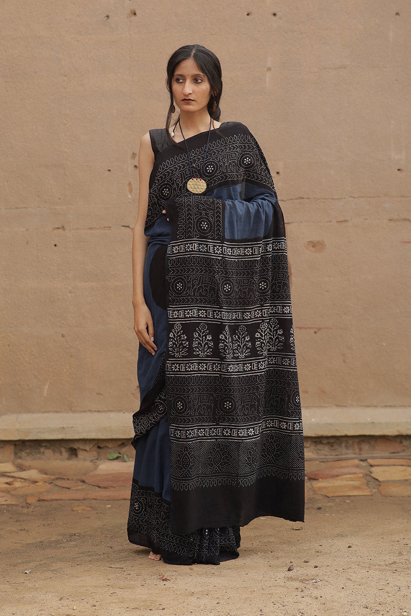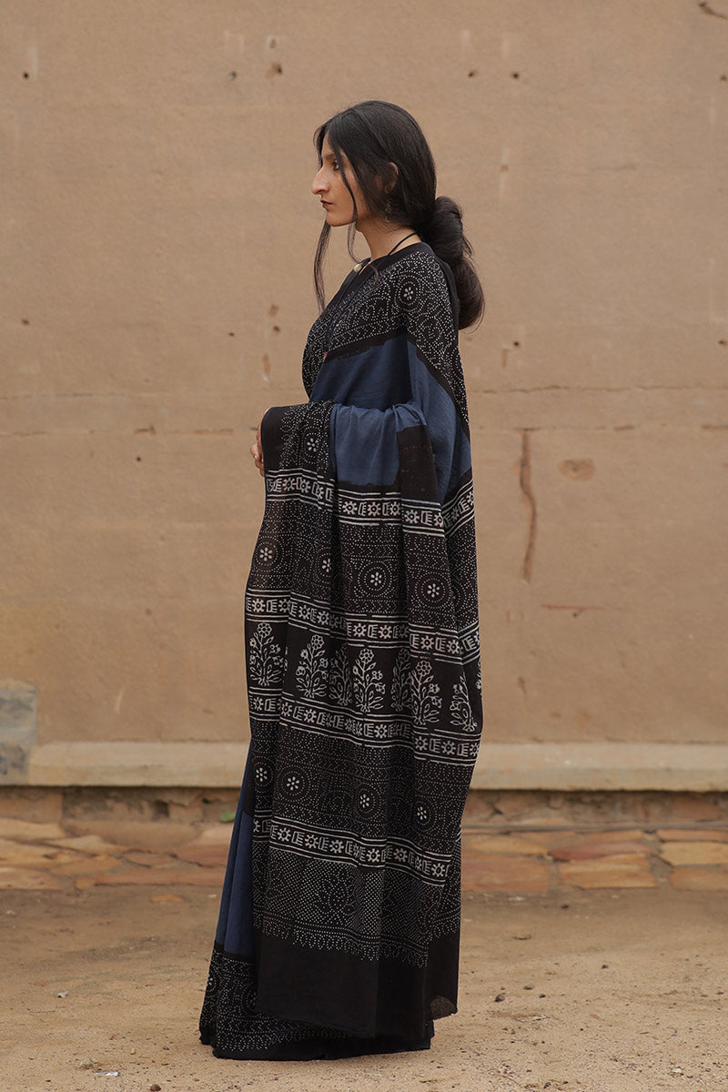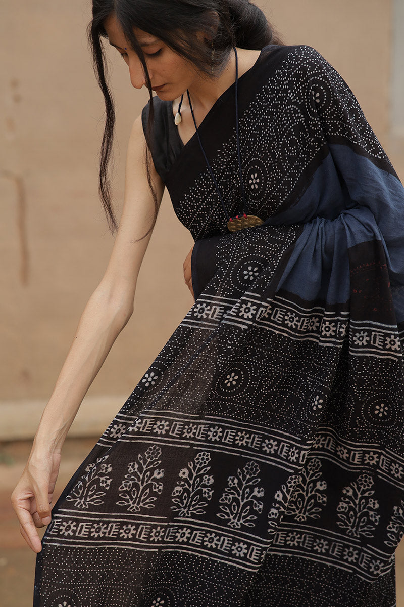 Handcrafted Ajrakh Block Print Cotton Saree