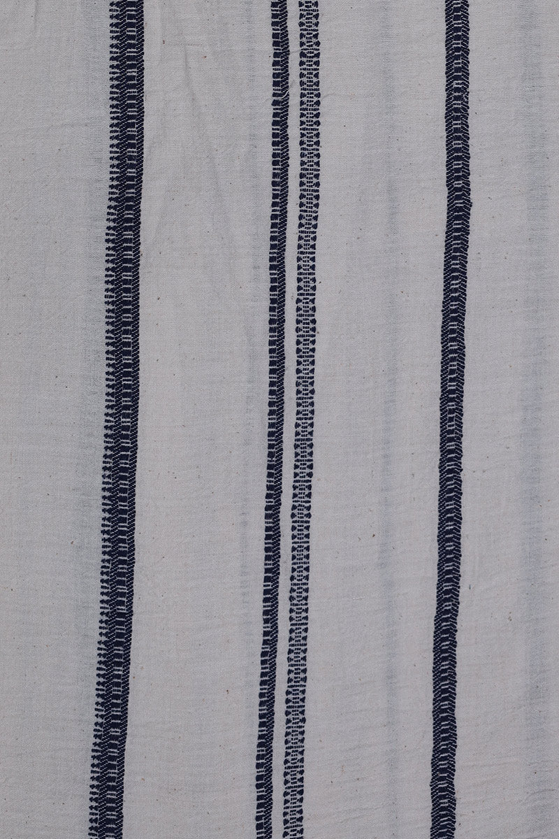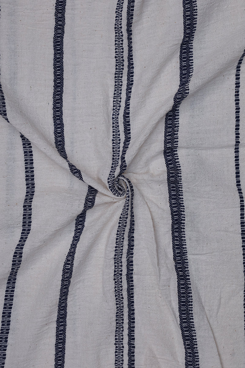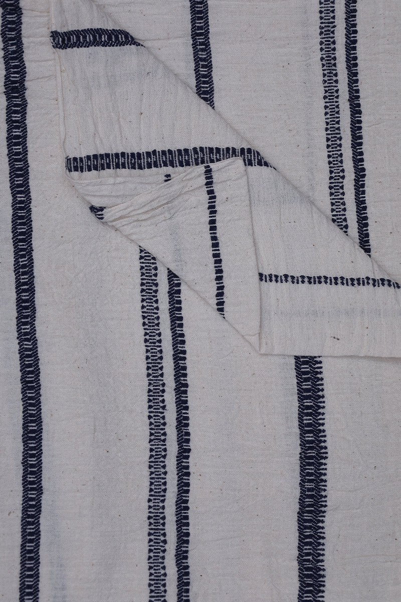 With its uneven parallel Indigo stripes on a soothing white base, each yard reflects the charm of natural imperfections — a true mark of handwoven authenticity. Spun on traditional handlooms using pure, naturally dyed yarns, this textile offers a breathable, soft, and durable feel perfect for year-round comfort.