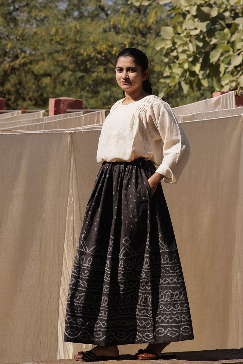 Each skirt paddu undergoes a slow, labour-intensive handmade process, making every piece truly one of a kind. The breathable nature of Kala cotton ensures all-season comfort, while natural dyeing lends the fabric its rich, earthy character.